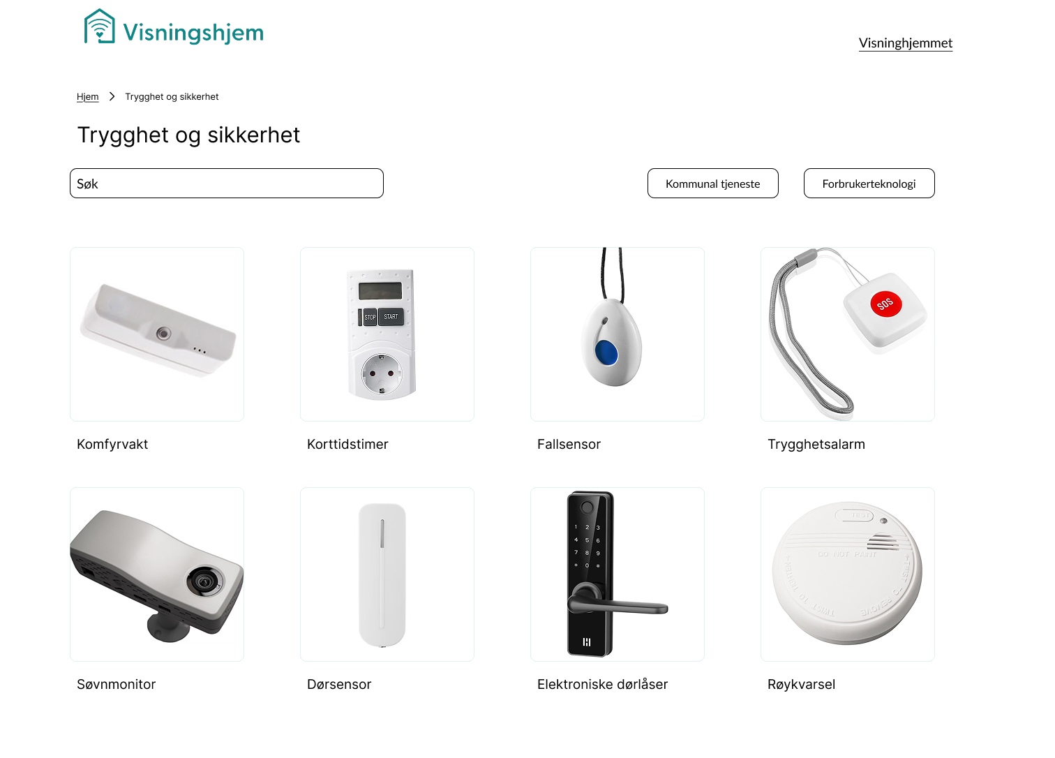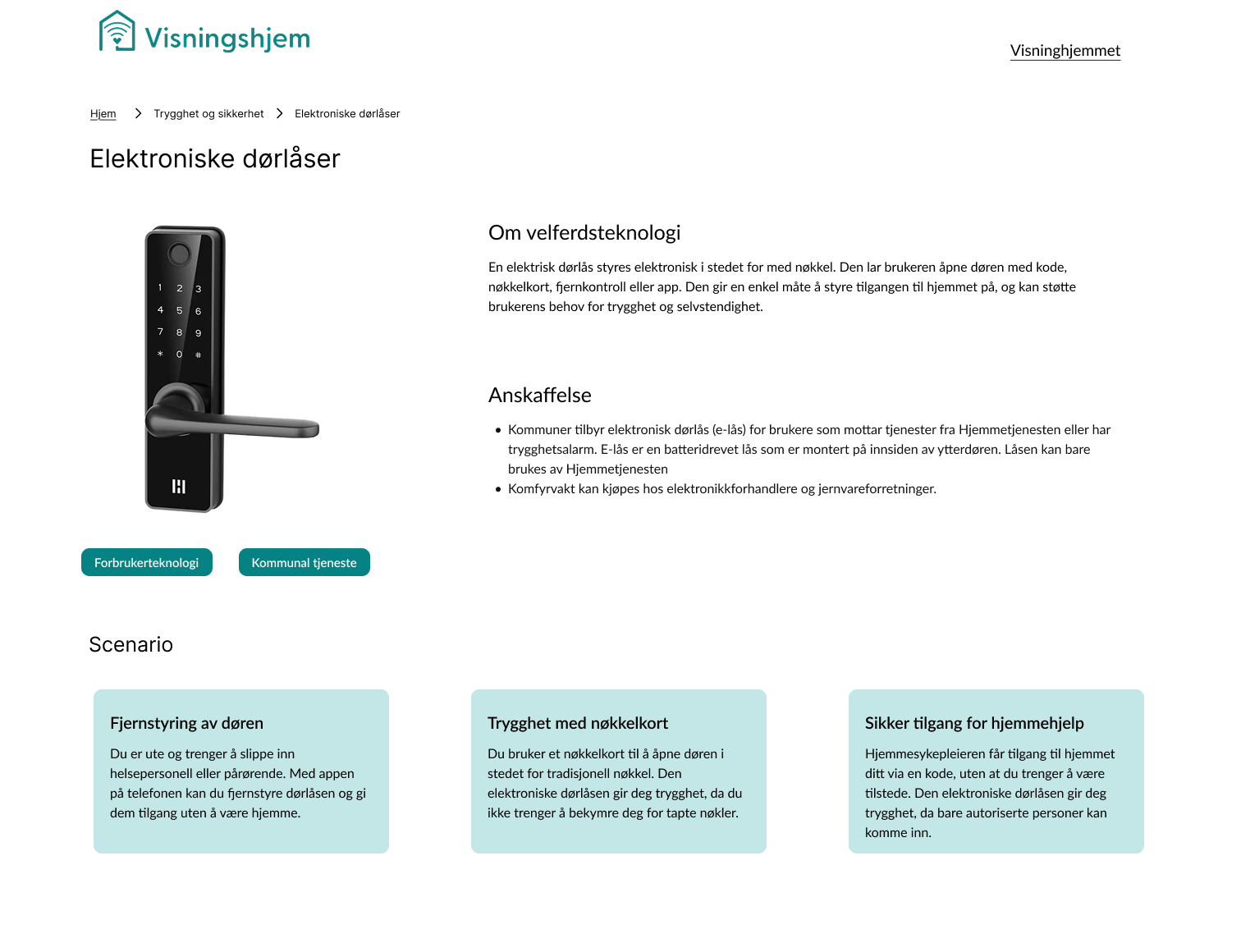 Et eksempel på hvordan en side for en spesifikk type velferdsteknologi ser ut.